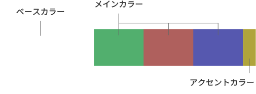 アクセントカラーとして黄色、これらの配色はテトラード配色という配色技法を使い選定しました。