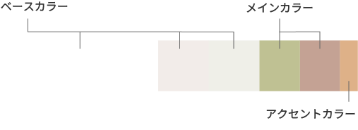 配色はゆったりとした印象にしたかった為、イメージスケールを参考にし、くすんだ色の配色にしました。