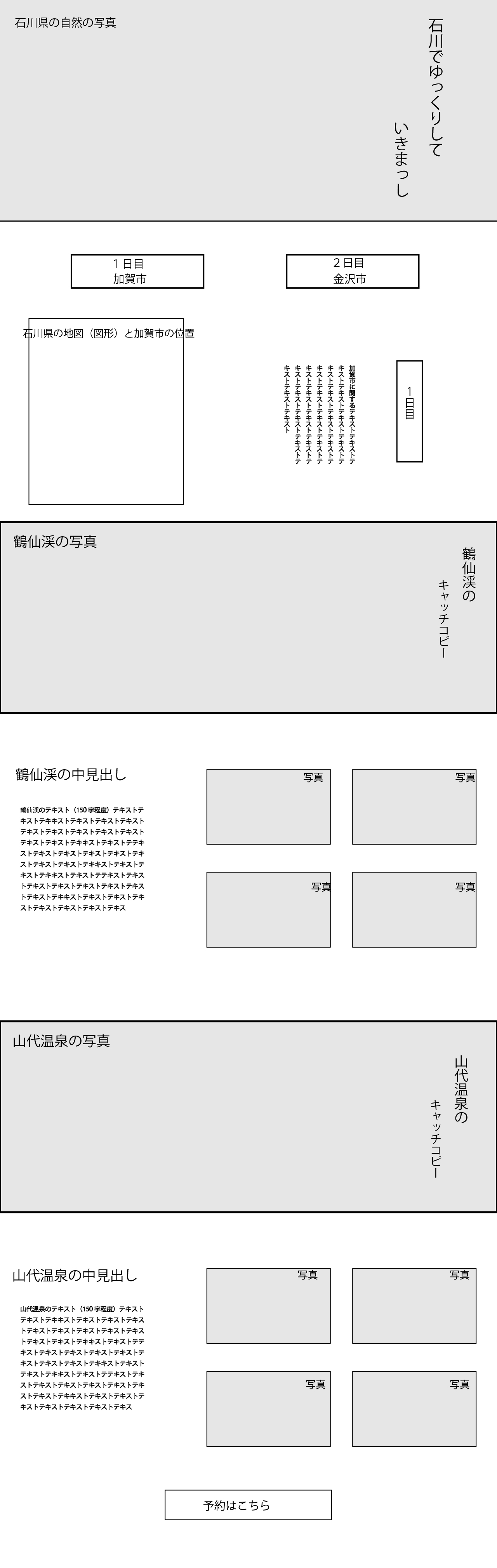 プランを紹介しているセクションでは一目で場所が分かるように石川県のイラストを大きく配置。