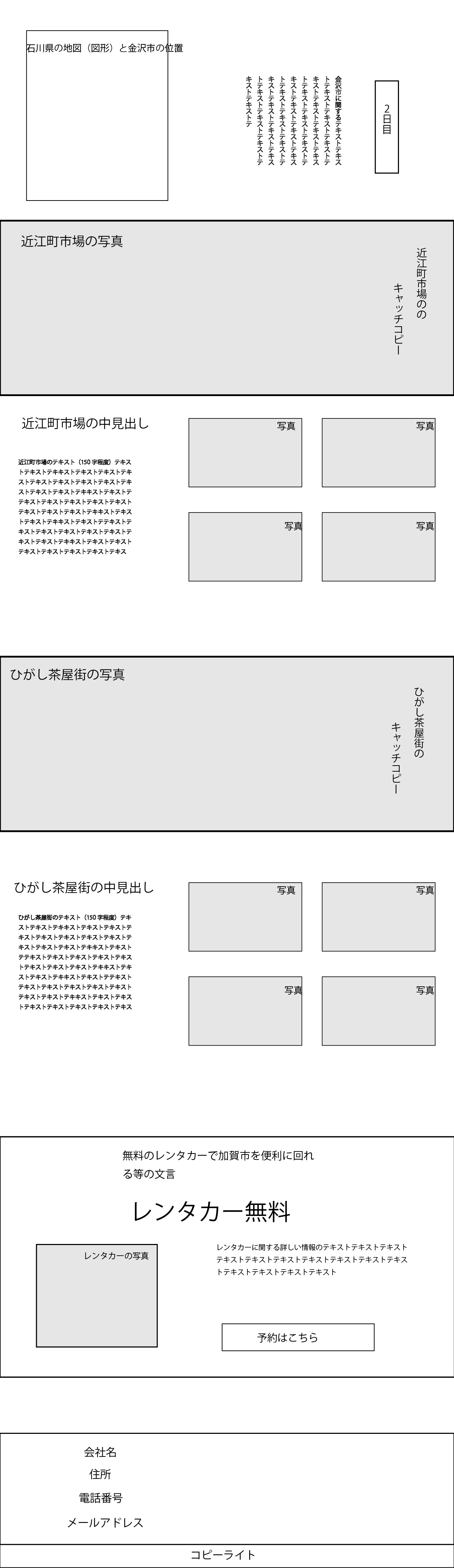 それぞれのスポットを紹介しているセクションでも同様に先に情報、後に画像が目に入るようにレイアウトを組みました。